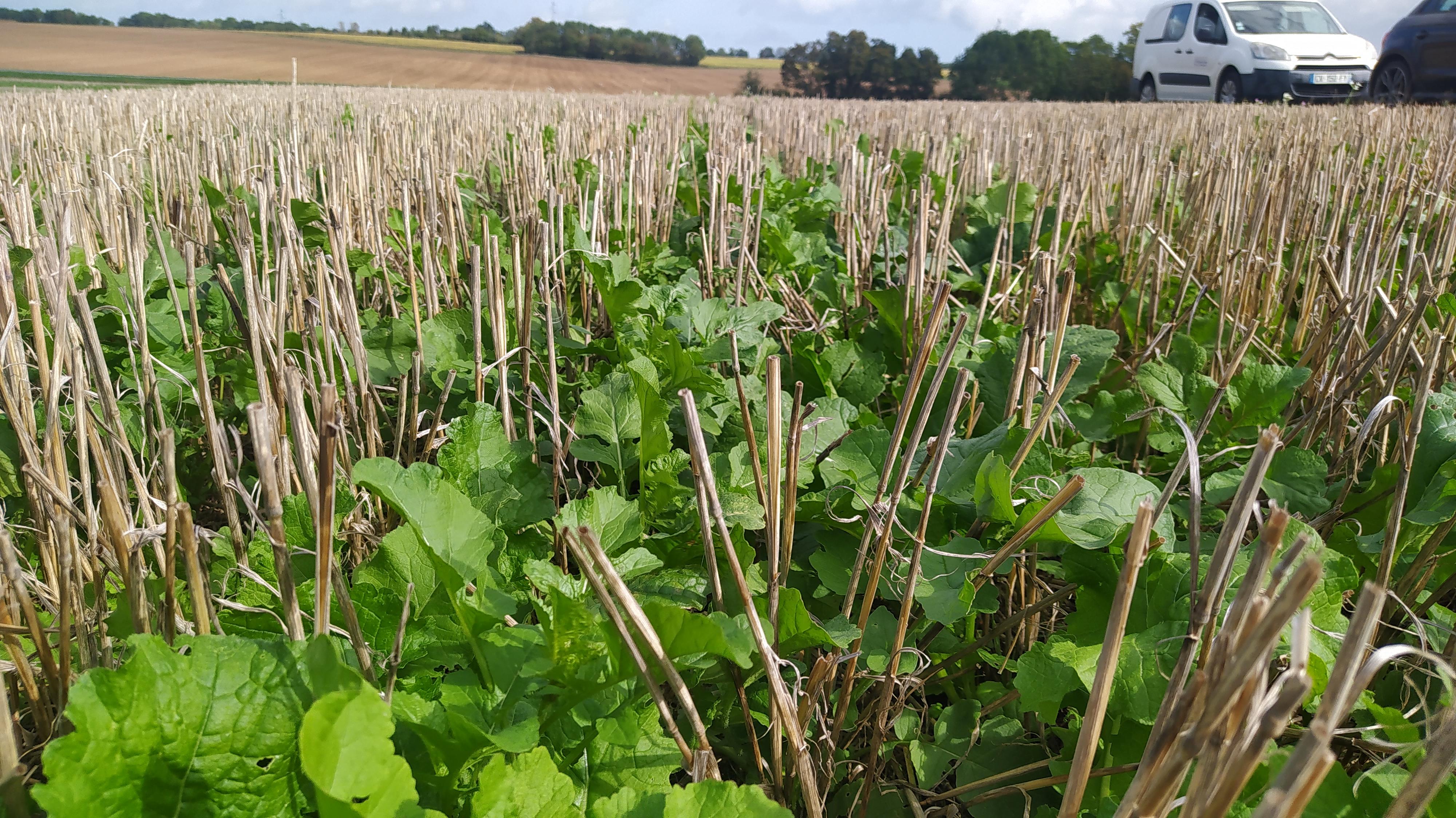 La 3ème rencontre, initialement prévue en Septembre, est repoussée en Octobre. La date étant retenue dans les agendas de chacun, les membres du groupe ont décidé de visiter deux parcelles de couverts végétaux, dont l'une mise en place un jour après la récolte de blé et l'autre qui servira de support à la coopérative pour sa journée "Couverts végétaux". Pour l'occasion des pesées de biomasses visant à estimer les éléments captés et restitués par le couvert seront réalisées via la méthode MERCI.